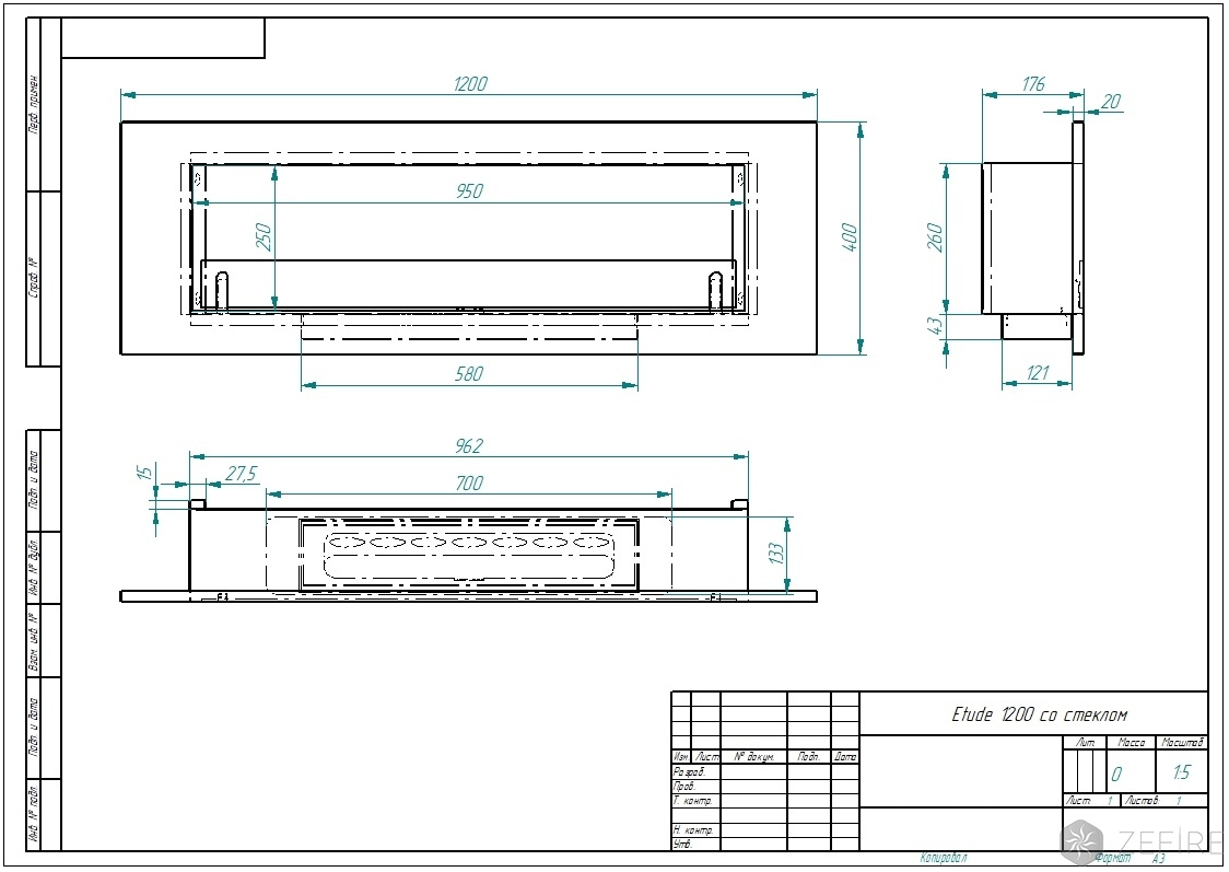 Биокамин Etude 1200 со стеклом (Estetic Flame)