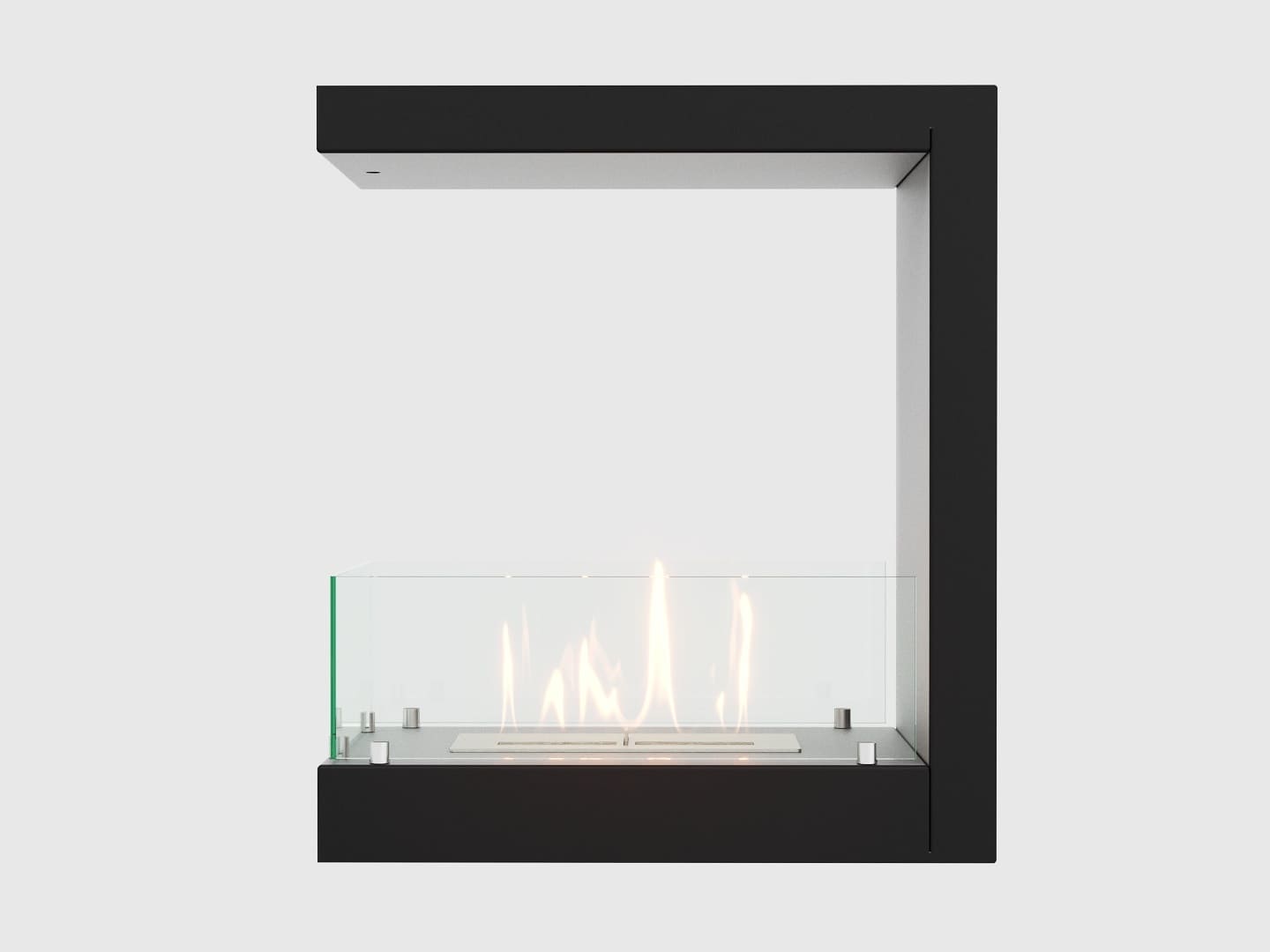 Очаг – это емкость куда заливается жидкое топливо. Емкость внутри заполняется керамическим материалом, который впитывает биотопливо, и в случае опрокидывания камина топливо не разливается. За счет этого конструкция стала полностью пожаробезопасной. Очаг встраивается в корпус из стали, который окрашивается специальной термостойкой краской, или же в заранее подготовленную нишу, изготовленную из негорючих материалов.