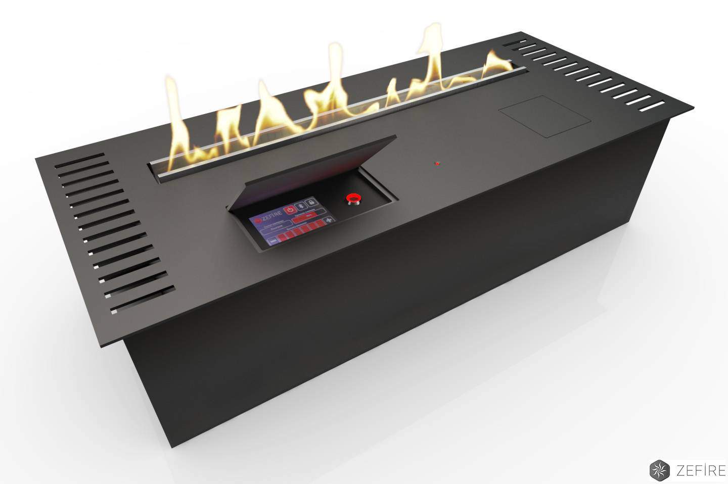 Очаг – это емкость куда заливается жидкое топливо. Емкость внутри заполняется керамическим материалом, который впитывает биотопливо, и в случае опрокидывания камина топливо не разливается. За счет этого конструкция стала полностью пожаробезопасной. Очаг встраивается в корпус из стали, который окрашивается специальной термостойкой краской, или же в заранее подготовленную нишу, изготовленную из негорючих материалов.