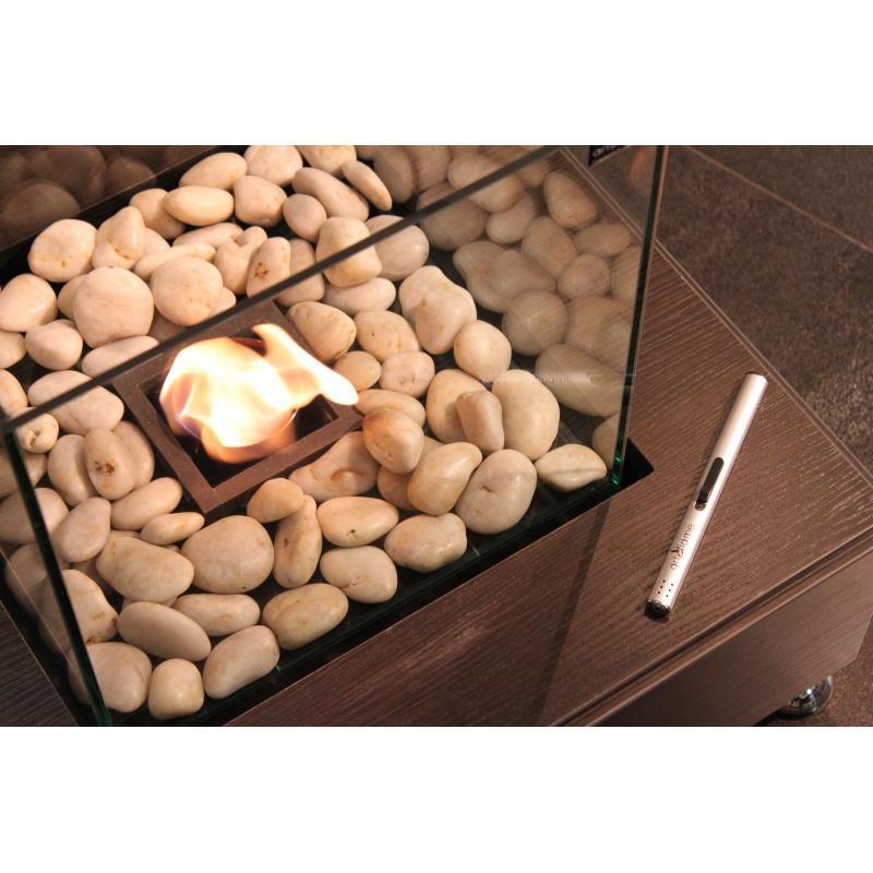 Очаг – это емкость куда заливается жидкое топливо. Емкость внутри заполняется керамическим материалом, который впитывает биотопливо, и в случае опрокидывания камина топливо не разливается. За счет этого конструкция стала полностью пожаробезопасной. Очаг встраивается в корпус из стали, который окрашивается специальной термостойкой краской, или же в заранее подготовленную нишу, изготовленную из негорючих материалов.