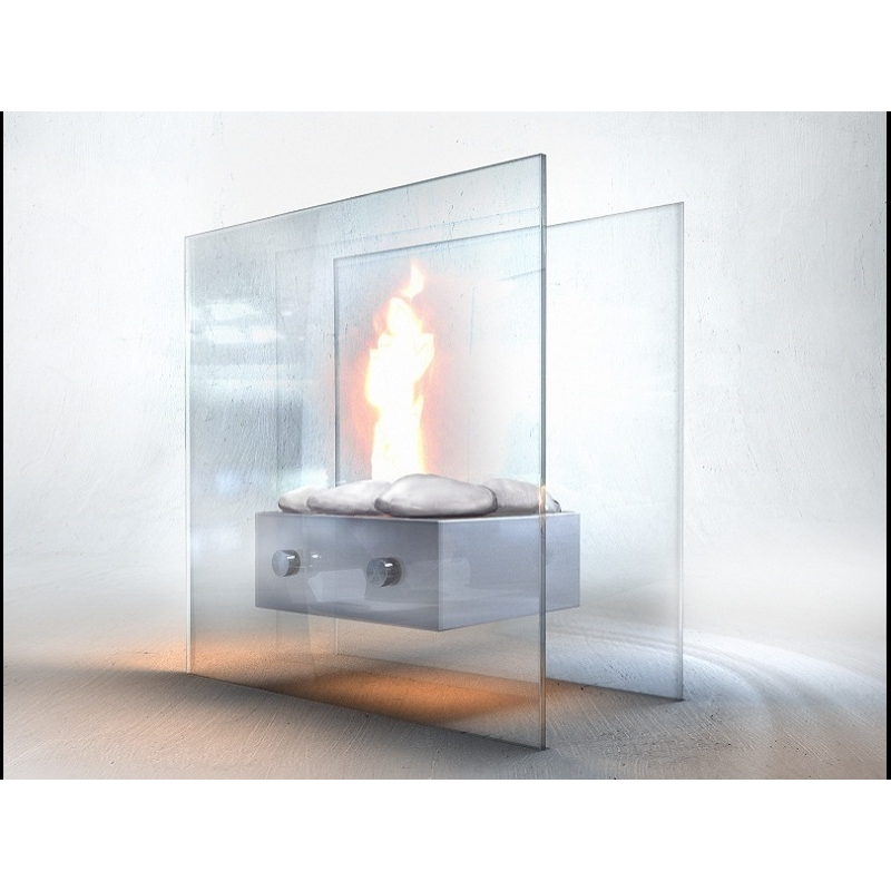 Очаг – это емкость куда заливается жидкое топливо. Емкость внутри заполняется керамическим материалом, который впитывает биотопливо, и в случае опрокидывания камина топливо не разливается. За счет этого конструкция стала полностью пожаробезопасной. Очаг встраивается в корпус из стали, который окрашивается специальной термостойкой краской, или же в заранее подготовленную нишу, изготовленную из негорючих материалов.