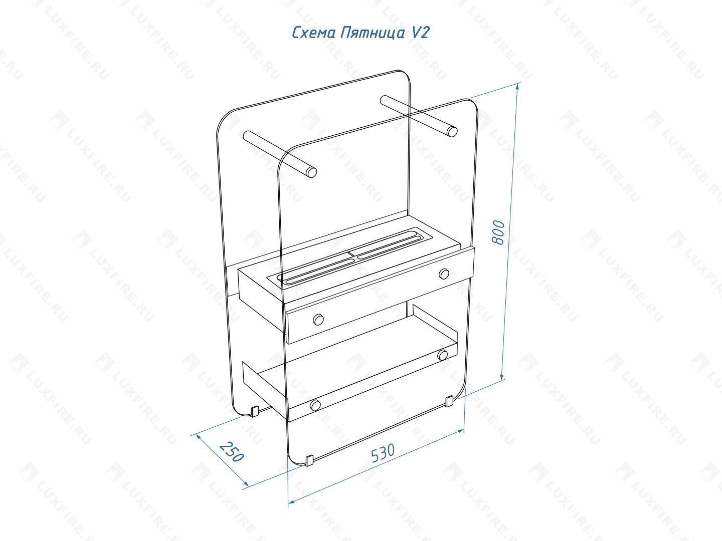 Размер биокамина( ВхШхГ):800х530х250мм