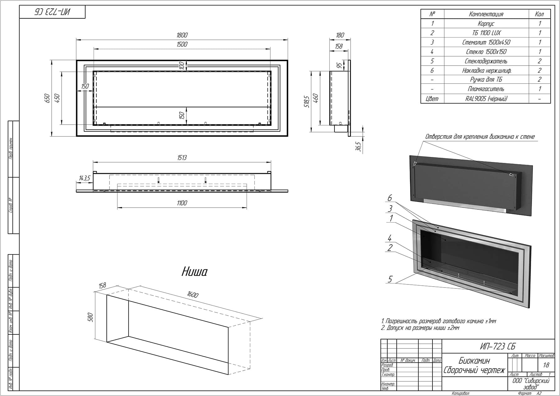 Встраиваемый Биокамин Saturn 1800 (SappFire)