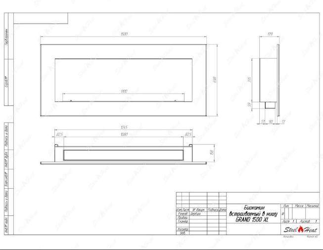Встраиваемый Биокамин SteelHeat GRAND-D 1500 XL предназначен для встраивания в глухие ниши из гипсокартона, кирпича, пеноблоков, бетона.