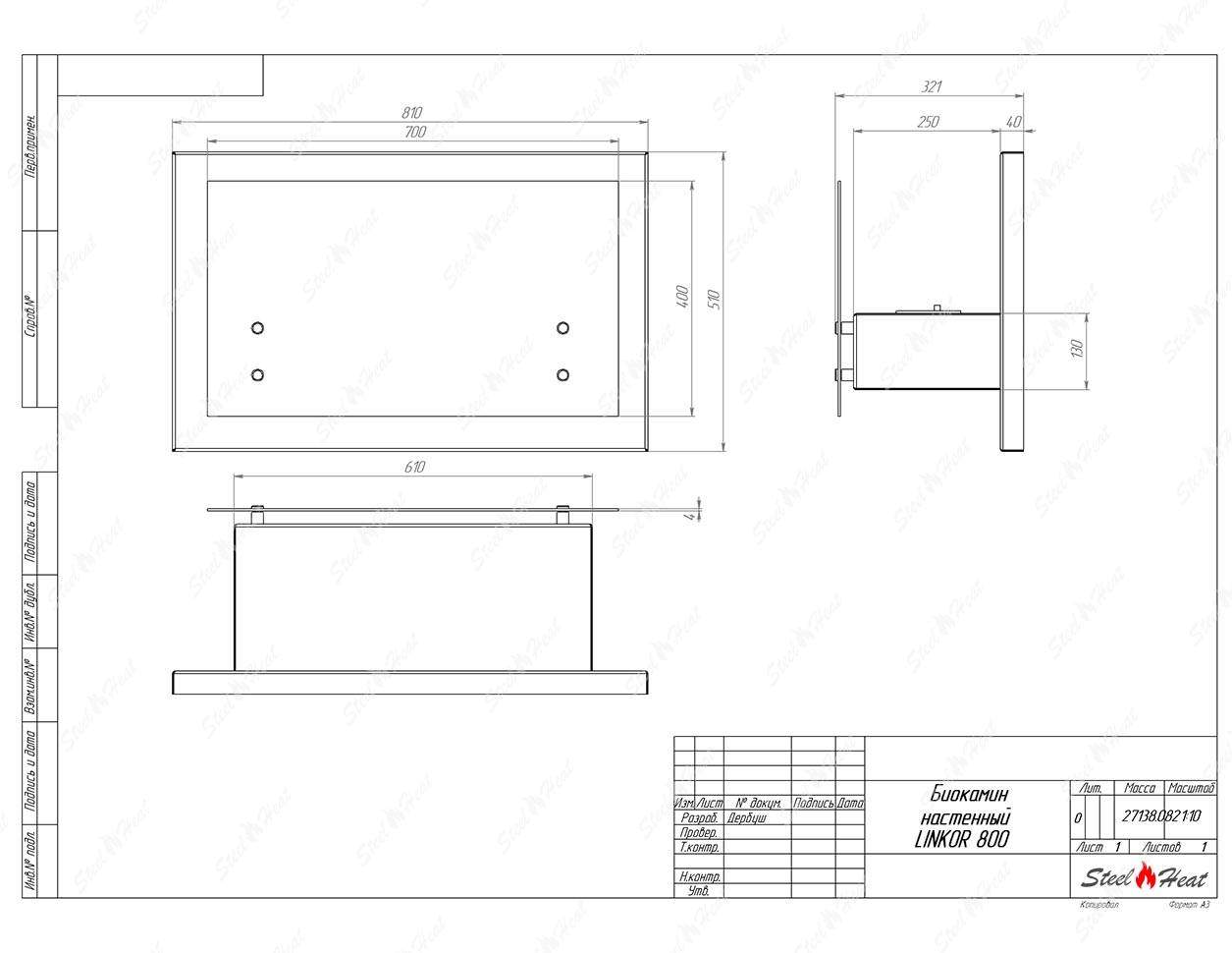 Биокамин SteelHeat LINKOR 800 стекло