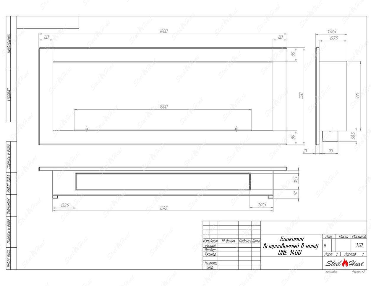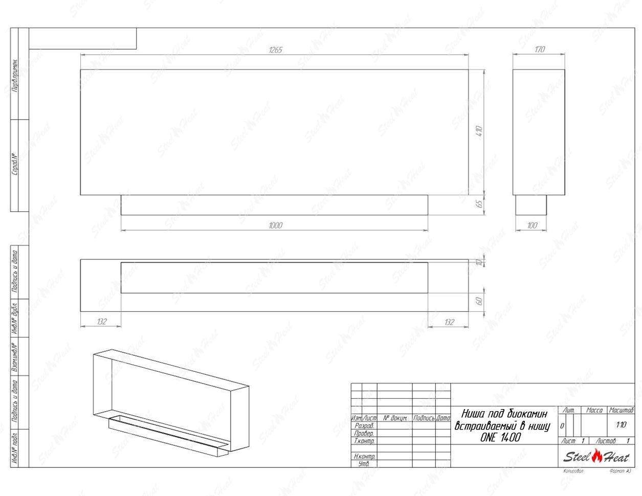 Встраиваемый Биокамин SteelHeat ONE 1400 предназначен для встраивания в глухие ниши из гипсокартона, кирпича, пеноблоков, бетона.