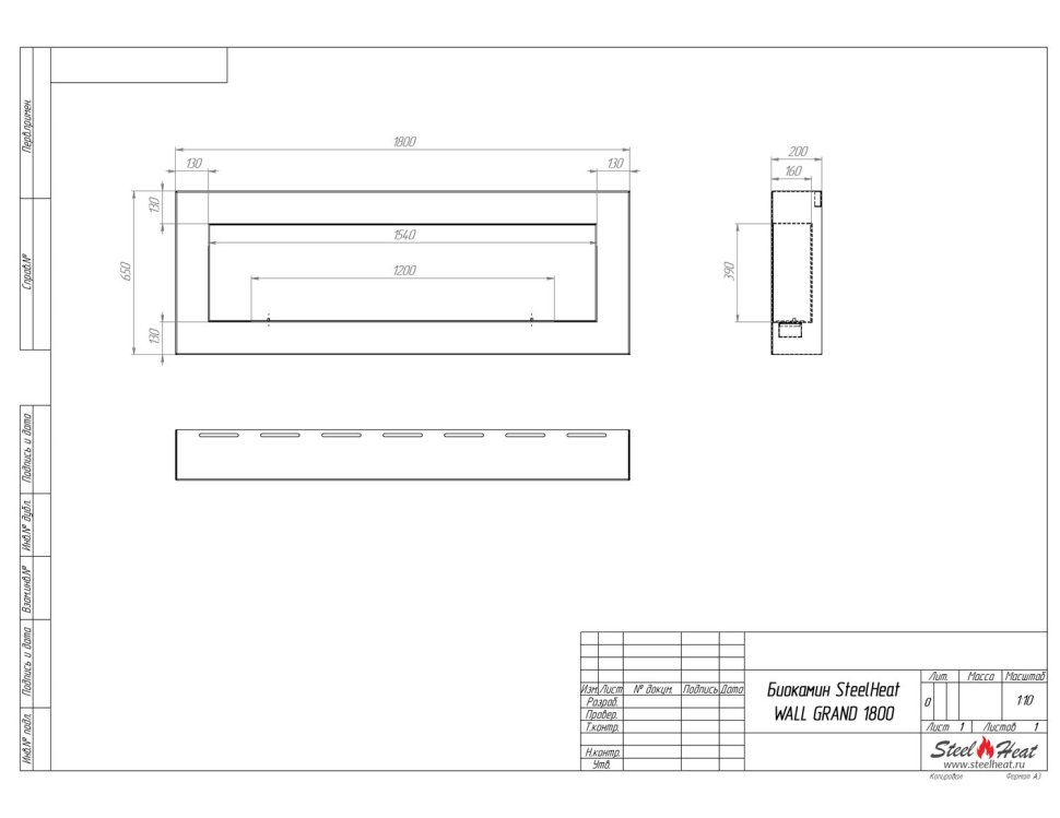 Биокамин SteelHeat WALL GRAND 1800 черный