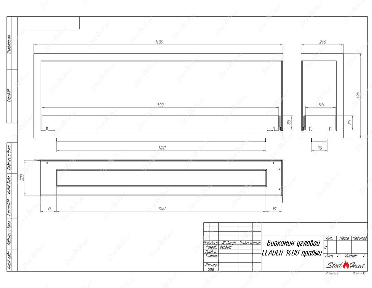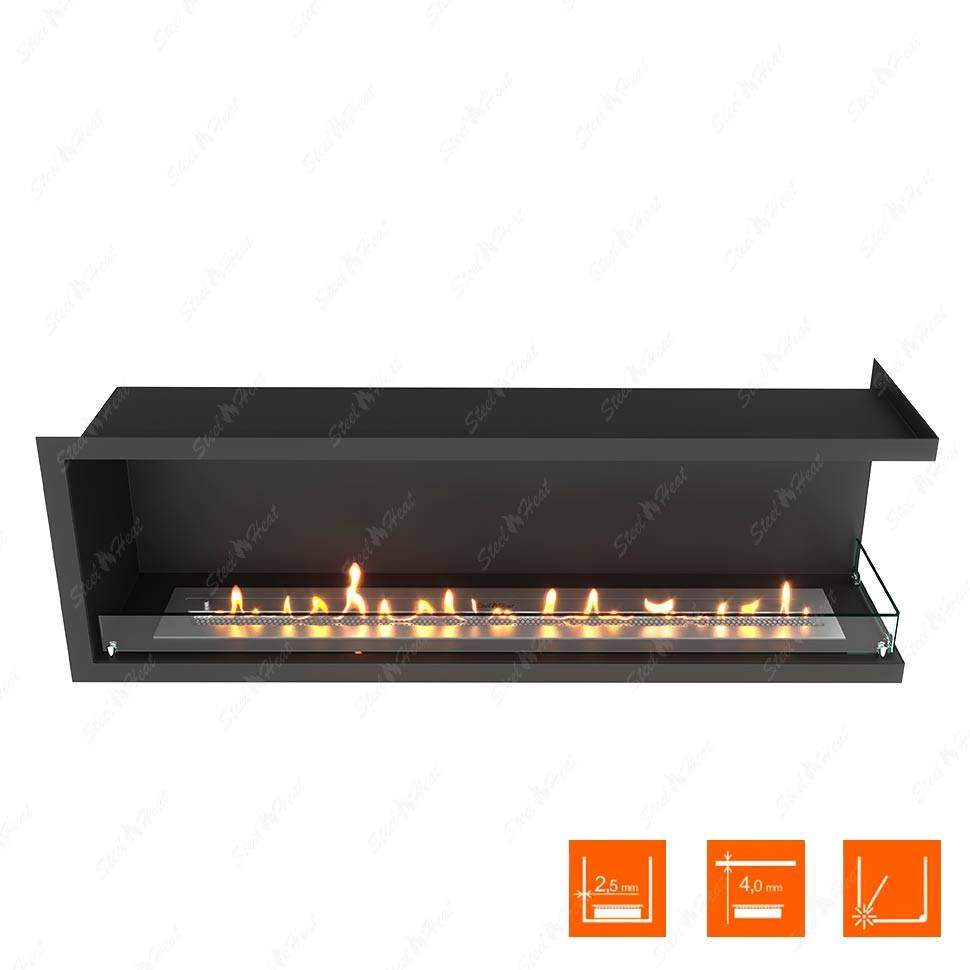 Встраиваемый Биокамин угловой SteelHeat Leader 1400 правый предназначен для встраивания в глухие ниши из гипсокартона, кирпича, пеноблоков, бетона.