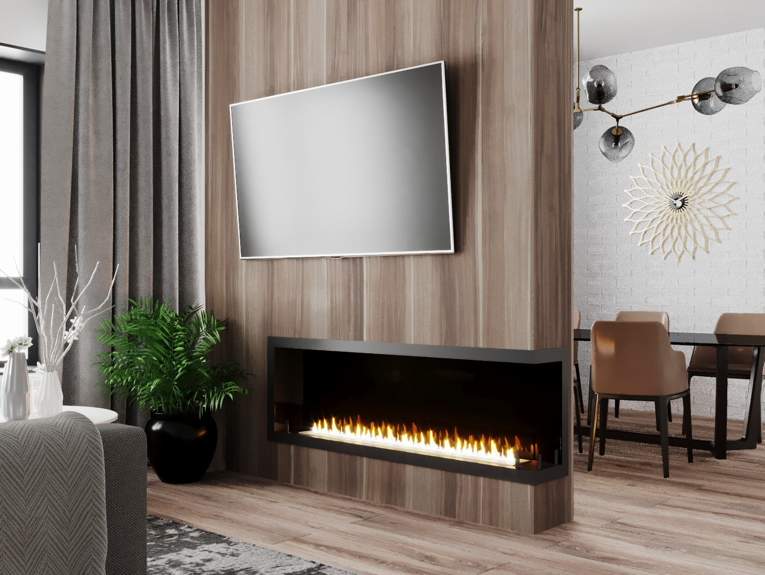 Встраиваемые варианты разделяются на такие как классические, устанавливаемые в подготовленное отверстие в стене или нише. Угловые, которые монтируются в угловую часть стены. Торцевые – открытые с трёх сторон. И сквозные, вид живого огня которых доступен в разных комнатах.
