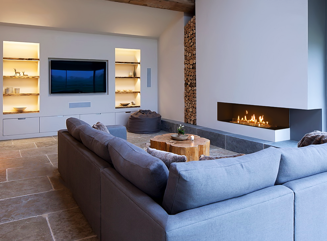 - Встраивается в стены, проёмы, ниши, каминные порталы, мебель.