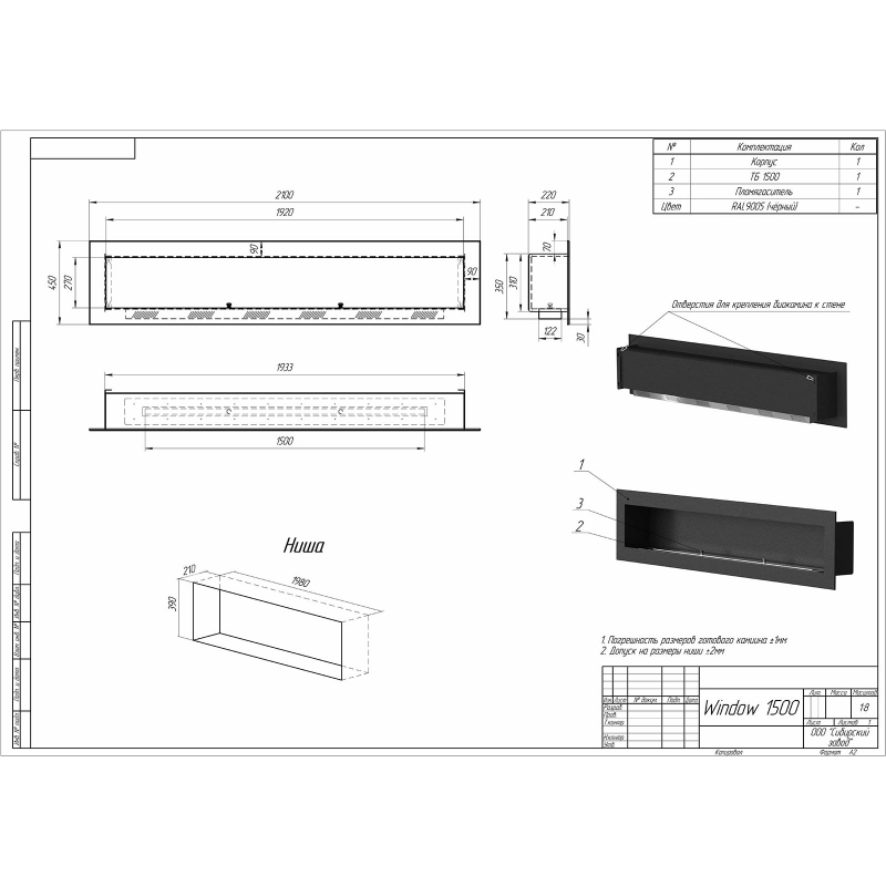 Биокамин встраиваемый W1500V PremiumFire