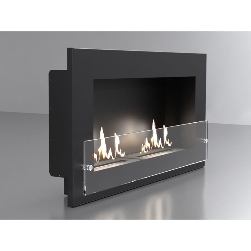Очаг – это емкость куда заливается жидкое топливо. Емкость внутри заполняется керамическим материалом, который впитывает биотопливо, и в случае опрокидывания камина топливо не разливается. За счет этого конструкция стала полностью пожаробезопасной. Очаг встраивается в корпус из стали, который окрашивается специальной термостойкой краской, или же в заранее подготовленную нишу, изготовленную из негорючих материалов.