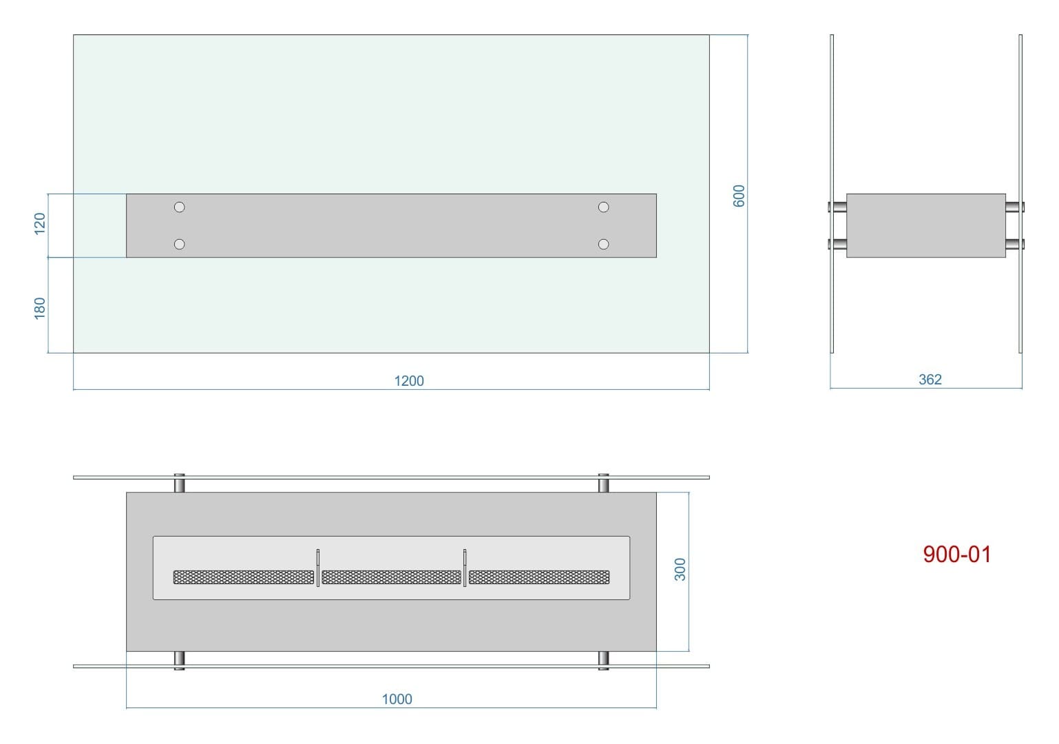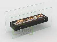 Представляет собой цельный металлический каркас с топливным блоком Lux Fire 900 М, закрепленный на 8 дистанционных держателях к защитным стеклам, создавая эффект «воздушности».