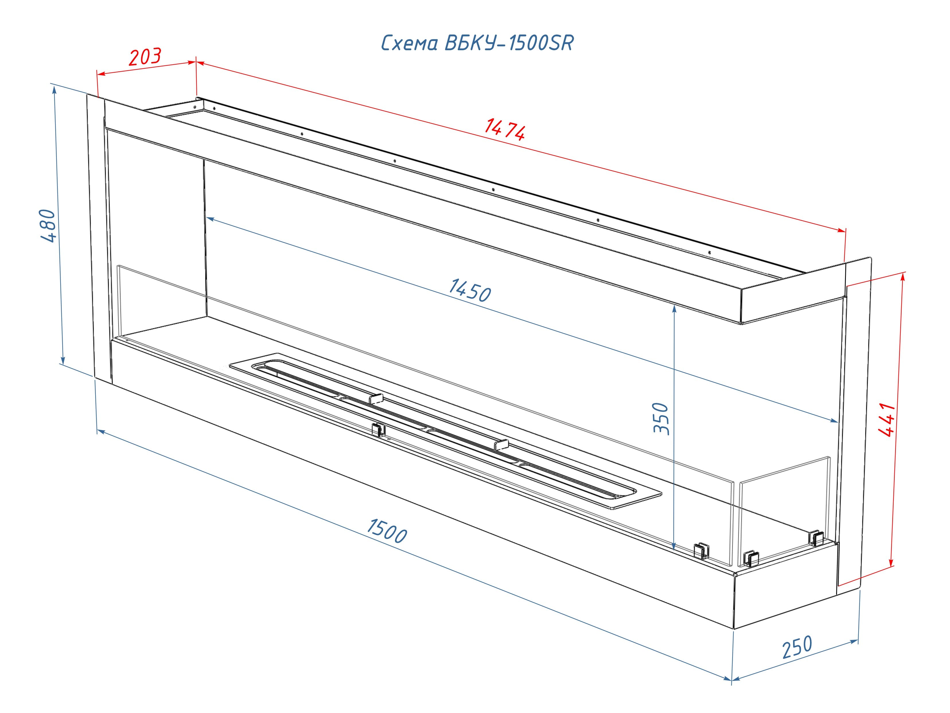 Описание встроенного биокамина Lux Fire Угловой 1500 SR (правый угол)