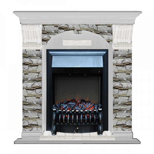 Каминокомплект Glenrich Арочный Алтай (беленый дуб)+Fobos Black