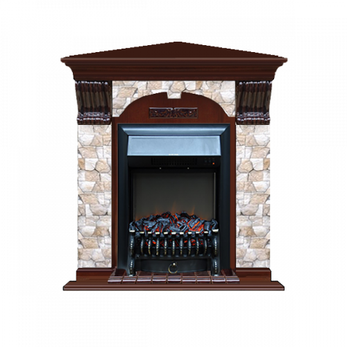 Каминокомплект Glenrich Арочный Арбат угловой (красное дерево)+Fobos Black