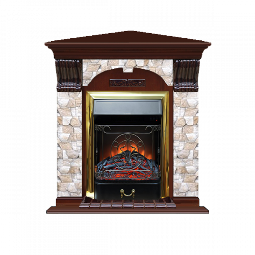 Каминокомплект Glenrich Арочный Арбат угловой (красное дерево)+Majestic Brass
