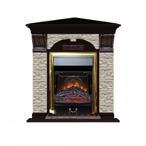 Каминокомплект Glenrich Арочный Грот однотонный угловой (венге)+Majestic Brass