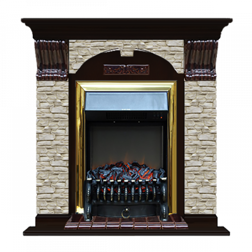 Каминокомплект Glenrich Арочный Грот однотонный (венге)+Fobos Brass