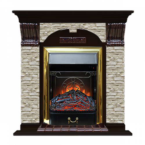 Каминокомплект Glenrich Арочный Грот однотонный (венге)+Majestic Brass