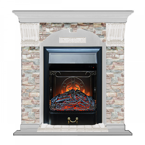 Каминокомплект Glenrich Арочный Грот цветной (беленый дуб)+Majestic Black