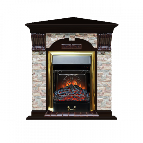 Каминокомплект Glenrich Арочный Грот цветной угловой (венге)+Majestic Brass