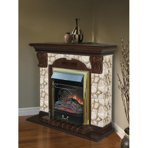Каминокомплект Glenrich Арочный Карелия угловой (дуб)+Majestic Brass