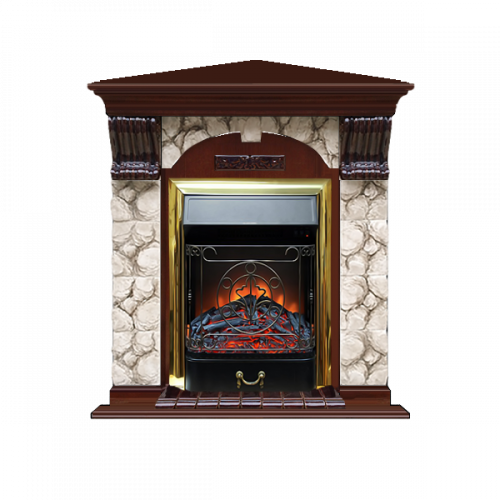 Каминокомплект Glenrich Арочный Карелия угловой (красное дерево)+Majestic Brass