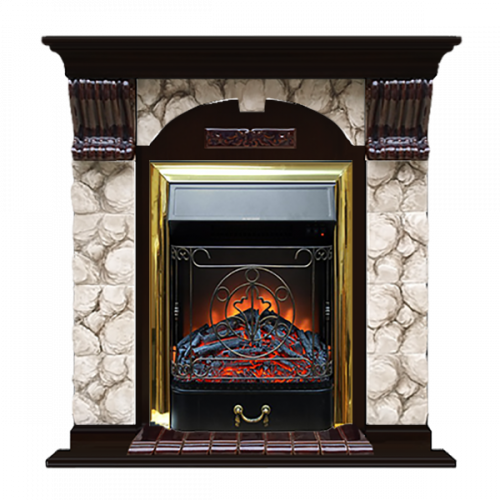 Каминокомплект Glenrich Арочный Карелия (венге)+Majestic Brass