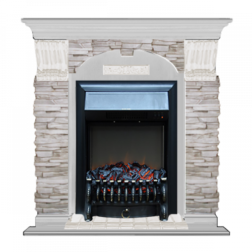 Каминокомплект Glenrich Арочный Мисхор (беленый дуб)+Fobos Black