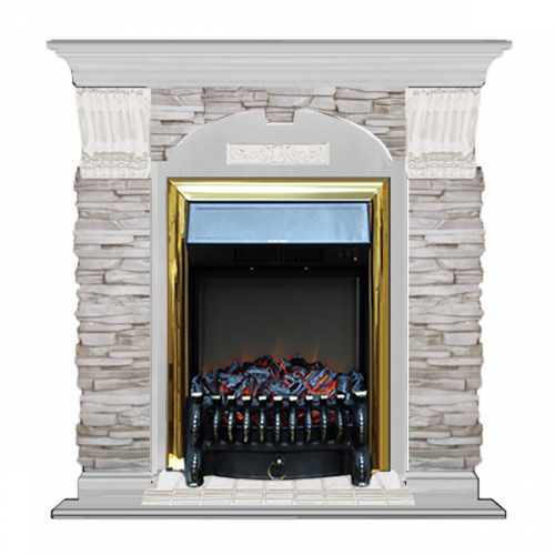 Каминокомплект Glenrich Арочный Мисхор (беленый дуб)+Fobos Brass