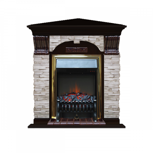 Каминокомплект Glenrich Арочный Мисхор угловой (венге)+Fobos Brass