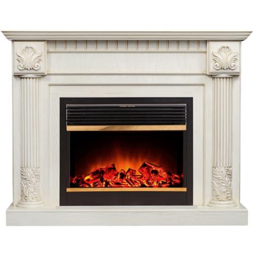 Каминокомплект Alex Bauman Athena (дуб белый с золотом)+Jupiter FX Brass (Афина)
