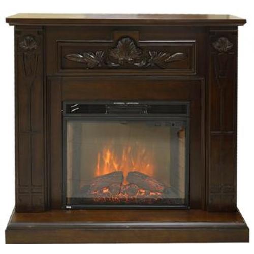 Каминный портал цвета «вишня премиум» выполнен в классическом стиле. Портал украшен обрамлением c прямыми правильными линиями, с рельефными узорами и эффектным цветком по центру.
