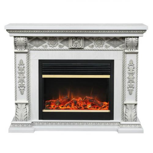 Каминокомплект Alex Bauman Bellagio (белый ясень)+Jupiter FX Brass