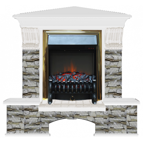 Каминокомплект Glenrich Бостон К Алтай угловой (белый)+Fobos Brass