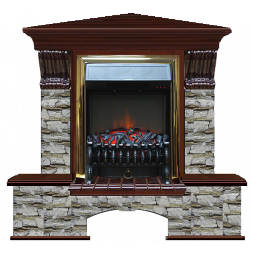 Каминокомплект Glenrich Бостон К Алтай угловой (красное дерево)+Fobos Brass