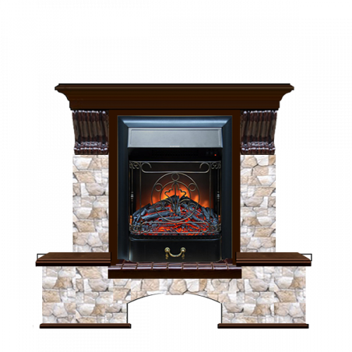 Электрокамин "Бостон К Арбат" изготовлен из МДФ со шпоном дуба, облицовка электрокамина - искусственным камнем серии Алтай, фактура и цвет камня создаёт ощущение лета в тайге. Окрас электрокамина любой на выбор.