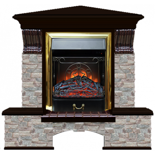 Каминокомплект Glenrich Бостон К Грот цветной угловой (венге)+Majestic Brass