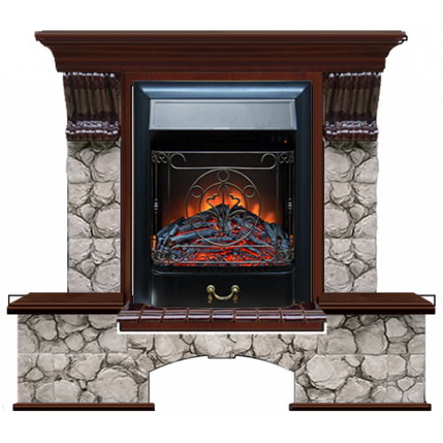 Каминокомплект Glenrich Бостон К Карелия (красное дерево)+Majestic Black