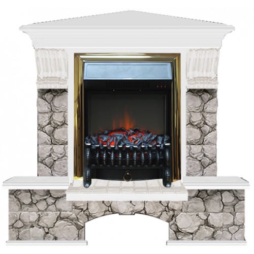 Каминокомплект Glenrich Бостон К Карелия угловой (белый)+Fobos Brass