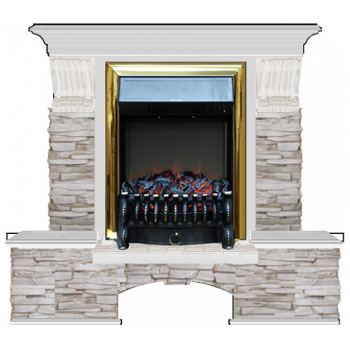 Каминокомплект Glenrich Бостон К Мисхор (беленый дуб)+Fobos Brass