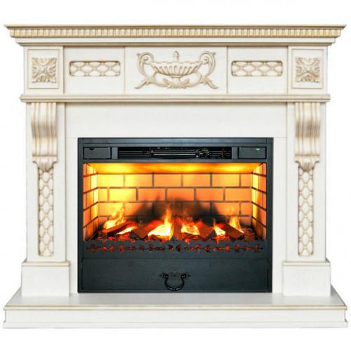 Каминокомплект «Corsica Luxe» от производителя Alex Bauman оборудован современным паровым очагом «3D Fog 29», в котором реализована очень реалистичная имитация натурального пламени. Выполнен портал каминокомплекта в античном стиле, который прослеживается в первую очередь в его оформлении. Отличается камин достаточно большими габаритами, но благодаря светлой расцветке он визуально не утяжеляет интерьер.