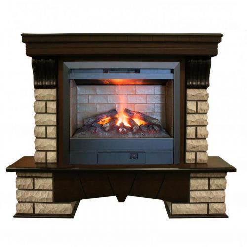 Встроенный в портал очаг выполнен в современном стиле, а его открытая конструкция позволяет беспрепятственно наслаждаться красотой огня. Внешняя строгость изделия смягчается за счет классической отделки внутренней поверхности под кирпич. Внутрь встроен Муляж дров и углей, который закрывает механизм имитации пламени. Использование специальной технологии окрашивания и высокая детализация муляжа обеспечивают ему сходство с настоящими Муляж дровми, горящими в топке. При этом эффект тления углей, создаваемый при работе очага, обеспечивает дополнительную реалистичность. Предлагаемая модель в первую очередь выполняет функцию декоративного оформления интерьера. Помимо непосредственно дизайна конструкции этому способствует реализация имитации пламени. Реализованная в конструкции система основана на работе ультразвукового парогенератора и блока галогеновой подсветки. Парогенератор за счет высокочастотных колебаний мембраны формирует из воды облако пара, поднимающегося в нишу очага. При этом галогеновые лампы формируют на паровой завесе объемное изображение языков пламени с поднимающимися клубами дыма. Это становится возможным за счет использования светофильтров. Жизнь огню придает постоянное обновление пара, приводящее к колебанию паровой завесы. Следует отметить, что формирование пара происходит не за счет работы термоэлементов, а высокочастотных колебаний мембраны парогенератора. Это позволяет тратить меньше электроэнергии, а сам пар получается абсолютно холодным. Поэтому, если кто-то прикоснется к такому огню, он не будет травмирован. Также при работе парового очага отсутствуют продукты сгорания, способные затруднить дыхание. Поэтому нет необходимости в вытяжке и формировании дымохода. Для обогрева камин также можно использовать. Встроенный в очаг обогреватель с максимальной мощностью в 1,5 кВт дает возможность создать комфортные условия не только в каминной зоне, но и в небольшом по площади помещении. Также допустимы еще два режима камина – в половину мощности и декоративный. В любом случае система имитации пламени позволит создать уютную обстановку. При обогреве не происходит пересушивание воздуха, так как камин дополнительно выполняет и функцию увлажнителя. Ведь пар из очага попадает непосредственно в помещение, не доставляя дискомфорта окружающим. Купить каминокомплект Country Rock с очагом 3D Helios 26 вы можете в интернет-магазине «Eco Stroy Complex». Если возникли вопросы или необходимо уточнить отдельные моменты, вам всегда помогут наши менеджеры. Для этого достаточно связаться с ними по телефону или воспользоваться формой обратной связи.Функциональные характеристики каминокомплекта