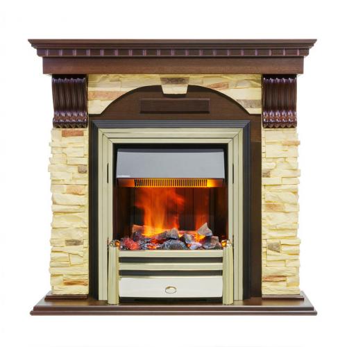 Каминокомплект «Dublin» от производителя Dimplex оборудован паровым очагом «Cavendish». Очаг входит в линейку классических очагов производителя, и в нем реализована современная система имитации реалистичного пламени. Габариты изделия относительно небольшие, что делает камин универсальным в плане выбора места для установки. Сочетание камня и дерева в оформлении портала позволяет отнести его как к классическому, так и рустикальному стилю.