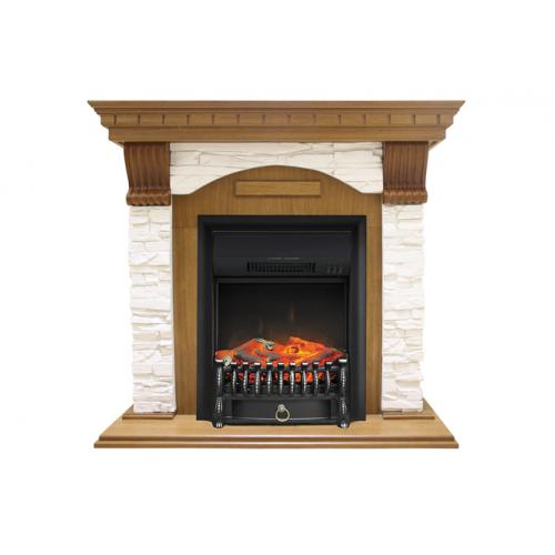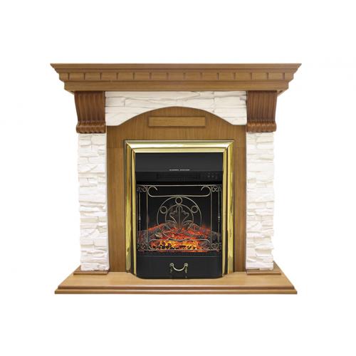 Каминокомплект Royal Flame Dublin угловой арочный скальный белый (дуб)+Majestic FX Brass