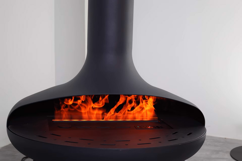 Подвесной камин из стали выполнен в классическом черном цвете. Благодаря уникальной топке, вращающейся на 360 градусов, вы сможете наслаждаться игрой пламени из любой точки помещения. Стальная конструкция отлично выдерживает высокие температуры, не деформируясь и не образуя трещин.Для финишного покрытия используется профессиональная термостойкая антикоррозионная краска. Это покрытие выдерживает нагрев до +1200 °C.В комплектацию входит: корпус камина, топка. Материал корпуса биокамина сталь с порошковым огнеупорным покрытием. Материал топливного блока: нержавеющая сталь толщиной 3 мм, марки ASI 430.