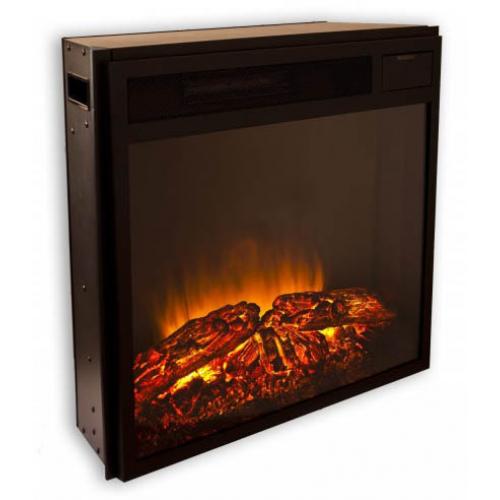 Внешним видом очаг напоминает классические топки, и выполнен он из качественного металла черного цвета. Переднюю его часть закрывает прямое стекло высокой прозрачности. В правом верхнем углу стекла с внутренней части вмонтирован небольшой LED-дисплей, на котором отображается вся информация по выбранному режиму. Топка очага оформлена муляжом сложенных дров и «прогоревших» углей, в который встроена независимая светодиодная подсветка, что позволяет создать эффект мерцания. Независимость подсветки означает, что она может гореть даже при выключенной основной подсветке и системы обогрева.