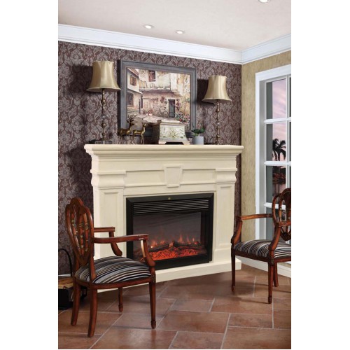 Новый каминокомплект (очаг-электрокамин и портал) Kellie 26 исполнен в цвете слоновая кость. В центре представленной модели находится очаг – широкий электрокамин под названием Moonblaze Deluxe, что многих покупателей привлекает, как особенное дизайнерское решение. Привлекательность покупки этой новинки – в том, что Вы одним действием, покупаете электрокамин и портал для него. Здесь не нужно подбирать отдельно эти две составляющие, а просто выбираете из моделей каминокомплекта наиболее подходящую Вам. Так как под портал-обрамление уже есть очаг, спейсер-кожух не нужен.