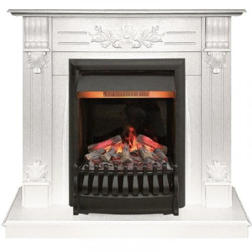 Выполнен портал каминокомплекта из материала МДФ, основу которого составляет прессованная древесная фракция. Именно за счет этого ему присущи такие важные характеристики натуральной древесины как высокая плотность и обрабатываемость. Плотность материала способствует приданию изделию большей жесткости и устойчивости. Обрабатываемость же его способствует возможности украшения портала резными элементами. При этом всем МДФ имеет более низкий вес и не разбухает при перепадах температуры и влажности. Дополнительно основа покрывается слоем натурального шпона, выполненным в цвете белого дуба. Он выполняет декоративную и одновременно защитную функцию.